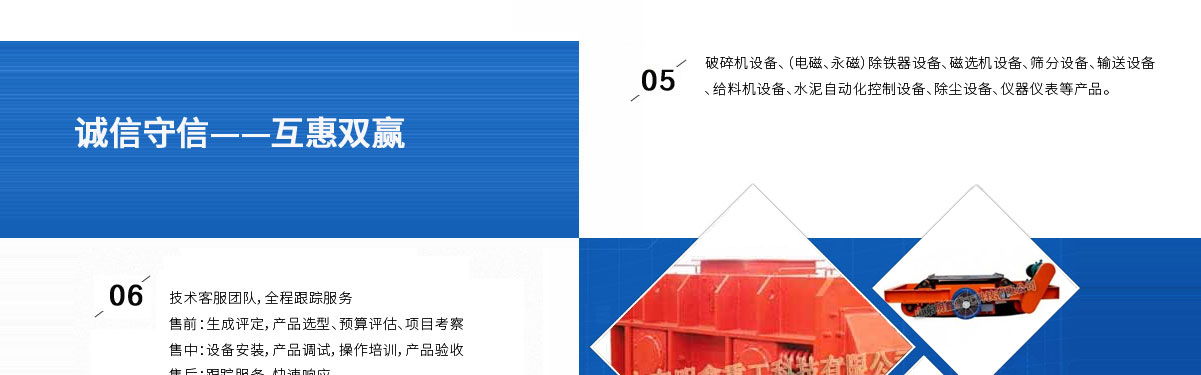 | 山東明鑫重工科技有限公司為是集科研開發(fā),設(shè)計(jì)制造、銷售、安裝、調(diào)試為一體的技術(shù)制造企業(yè)。公司位于美麗的****風(fēng)箏都-濰坊市(國家AAAA級森林公園-沂山景區(qū)駐地)臨朐東城工業(yè)園。本公司產(chǎn)品種類有:破碎機(jī)設(shè)備,(電磁、永磁)除鐵器設(shè)備,磁選機(jī)設(shè)備,篩分設(shè)備,輸送設(shè)備,給料機(jī)設(shè)備,水泥自動化控制設(shè)備、除塵設(shè)備,儀器儀表等產(chǎn)品。其產(chǎn)品有五十多個系列,四百多種規(guī)格,并可根據(jù)客戶需求設(shè)計(jì)生產(chǎn)相應(yīng)的產(chǎn)品。其產(chǎn)品廣泛應(yīng)用于冶金、電力、煤炭、礦山、造紙、食品、化工建材、耐火材料、磚瓦、水泥、玻璃等行業(yè),產(chǎn)品暢銷國內(nèi)三十多個省市、自治區(qū)。 |