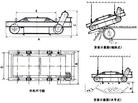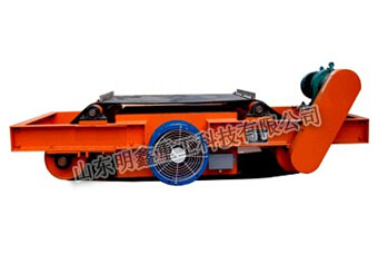 RCDC系列風冷自卸式電磁除鐵器,是在RCDA系列除鐵器的基礎上增加了驅動電機、滾筒、帶刮板的卸鐵膠帶等組成的卸鐵機構。在工作過程中卸鐵機構自動將卸鐵皮帶吸附的鐵磁性物質卸到集鐵箱內,無需停電人工清理,實現了除鐵自動化。